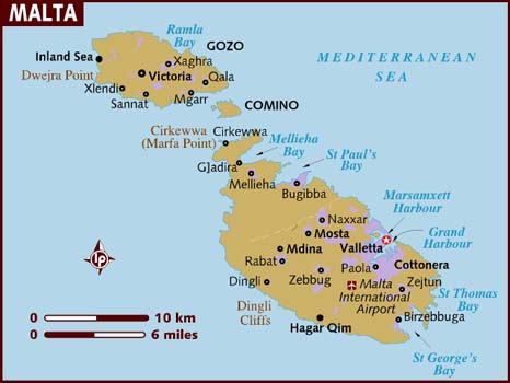 Akdeniz'de,Sicilya'nın güneyinde kalan küçük ve takımadalardan oluşan bir devlettir.3 büyük ve 2 küçük adadan oluşur.Büyük adaların isimleri büyükten küçüğe sırayla Malta,Gozo ve Comino'dur.